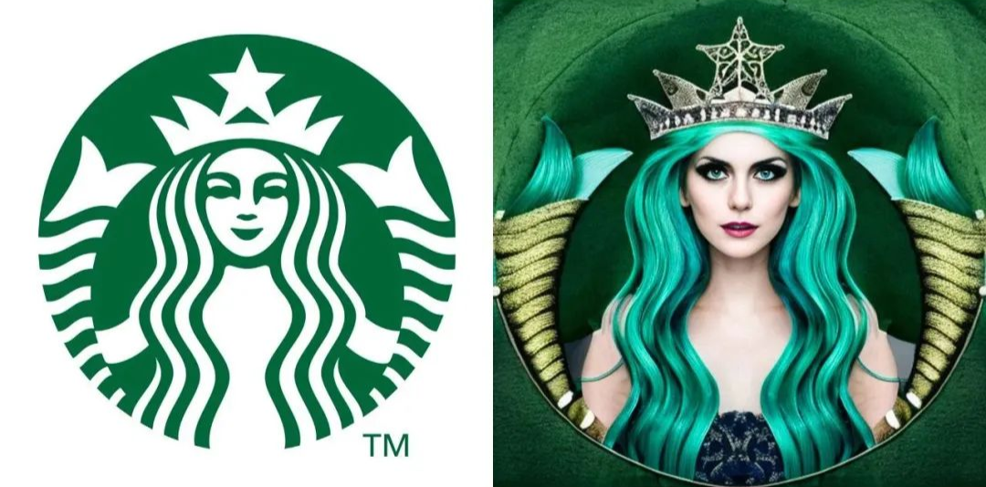 星巴克的logo一直是被玩得最花的,此前,就有网友用AI绘制的星巴克logo,女海妖从插画变为真人,海族女王既视感。