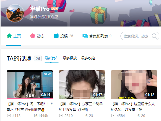 这不,近日又有网友指出,在B站上又出现了一个疑似猫一杯马甲账号的“牢猫Pro”(可能被网友举报封禁了,已搜不到),其账号介绍为“猫姐永远在我心里”,自6月10日开始就上传猫一杯出镜的相关视频。