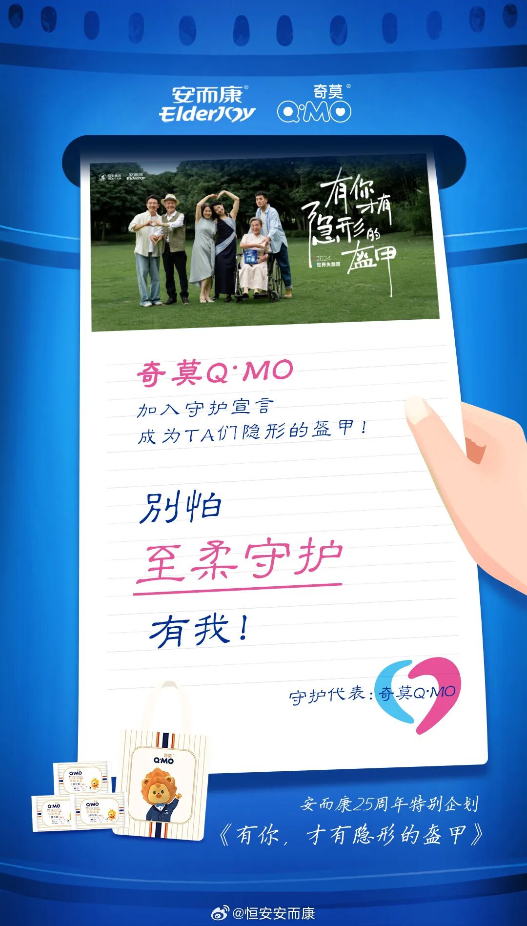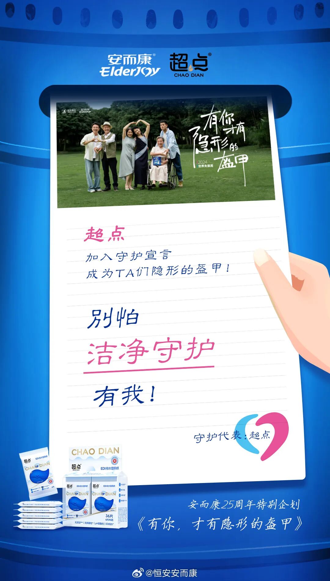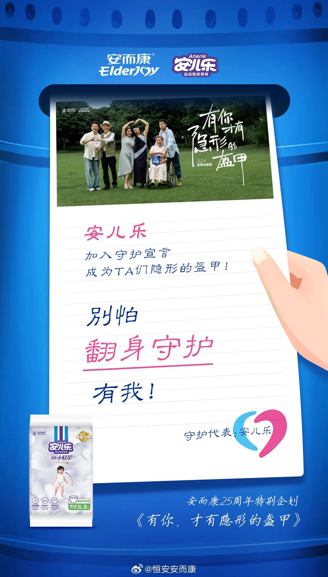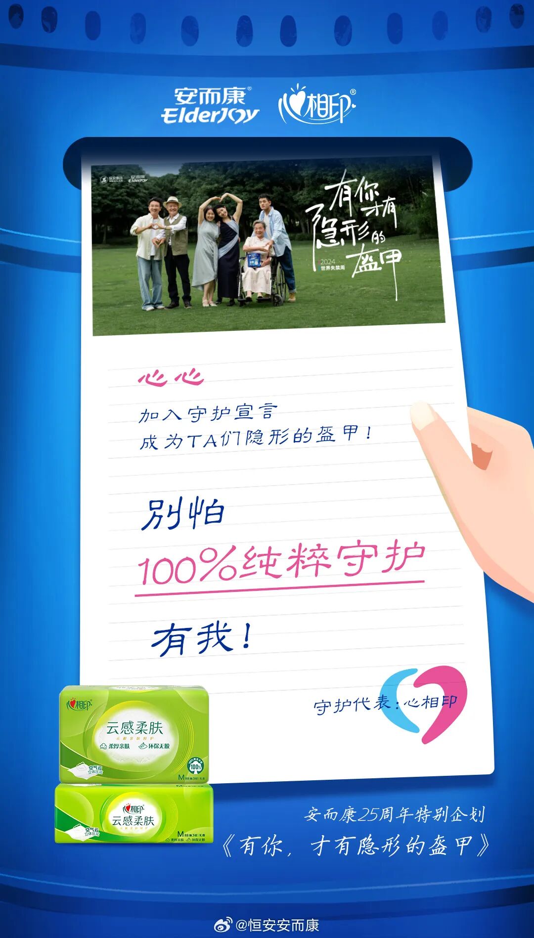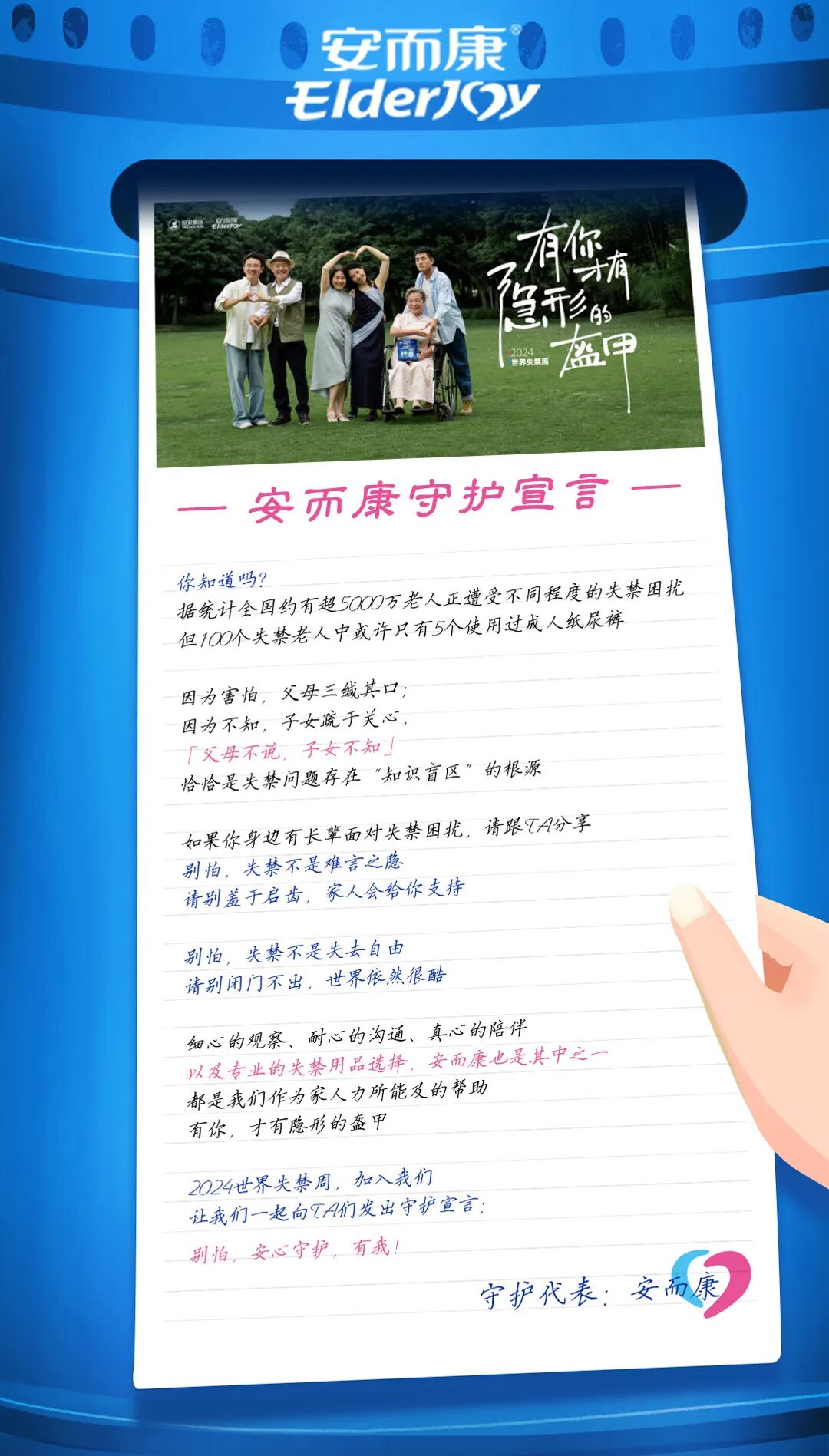 因此在接下来的阶段,安而康联合品牌好友们打造“安而康守护宣言”主题海报,向失禁群体传递爱与关怀。