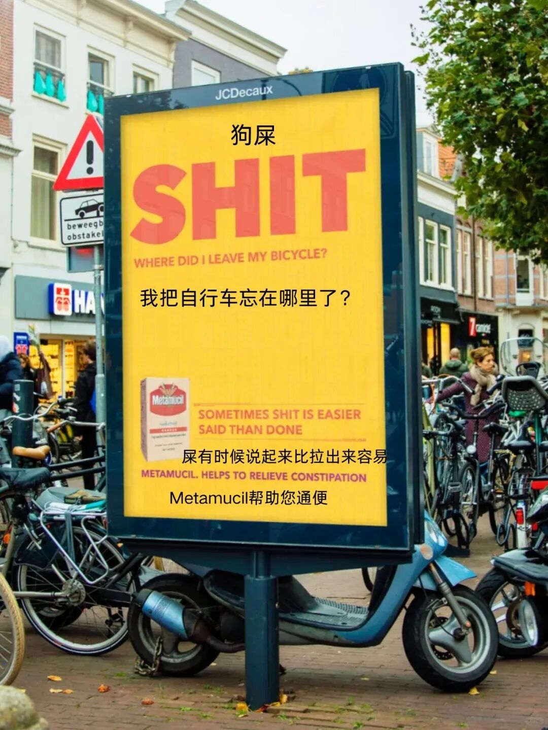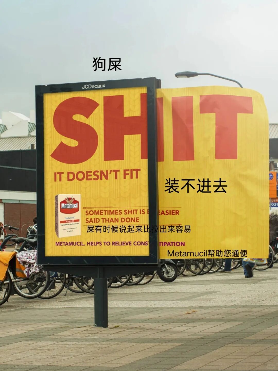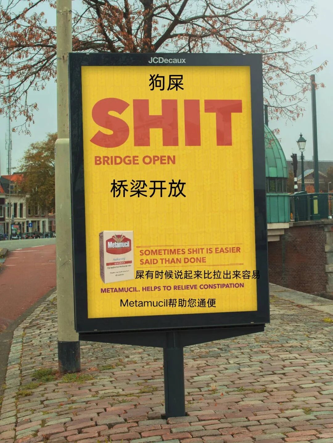 在荷兰语脏话中排名前二!基于这点,致力于治疗便秘的品牌Metamucil推出了一组当街破口大骂的户外广告:有时候说起来容易做起来难。