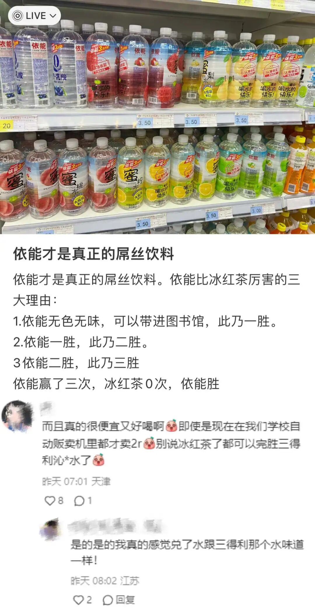 有网友发现,依能在太原本地便利店金虎、唐久有时只卖2块9,“这个价连矿泉水都买不到”;但更懂生活的人出现了——