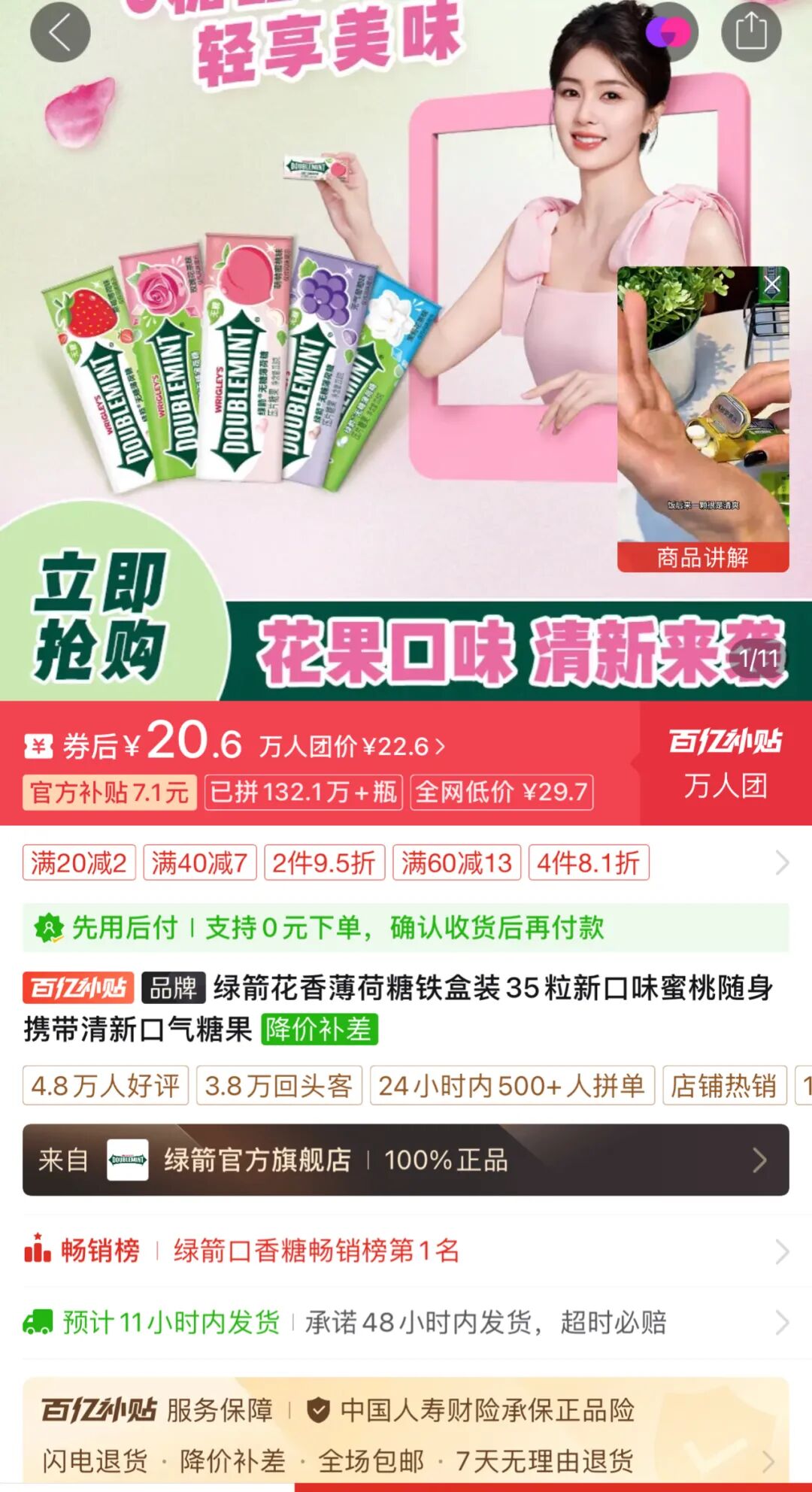 今年大促,很多品牌也盯上了拼多多的细分赛道,绿箭新晋代言人白鹿通过微博种草,将粉丝引流至拼多多绿箭官旗,带动店铺单日销售额同比增长了6倍,其他明星同款的绿箭组合产品也在微博发布当日热销近万件。