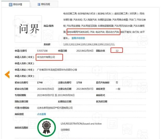 但是通过商标局查看,问界商标所有权此前一直是华为。