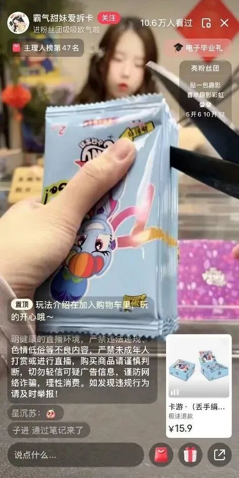 可能很多人想不到,在这一包包 3 寸的集换式卡牌里,其实潜藏着月销百万 GMV 的巨大商机,在拆卡直播中,人均客单消费可达 200-400 元,个别用户单次消费甚至高达上万元。