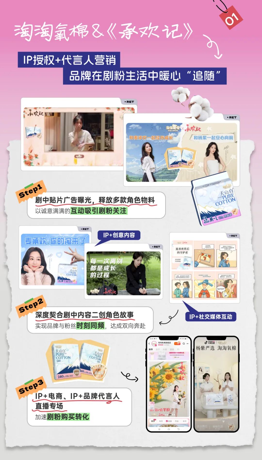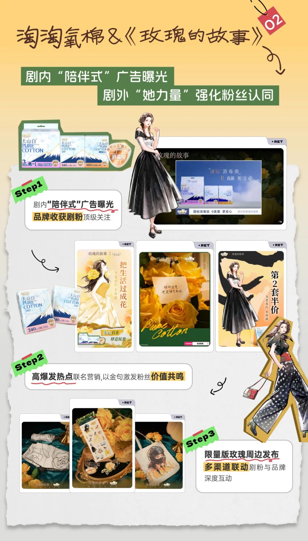《承欢记》中借代言人杨紫饰演的“麦承欢”一角,渗透品牌暖心、陪伴的美好形象,与现实中温柔感性的女粉产生共鸣;《玫瑰的故事》里,与“玫瑰”的“结合”,宣扬女性独立与自由的精神追求,在一浪接一浪的社交互动中,圈粉现实中的独立女性。