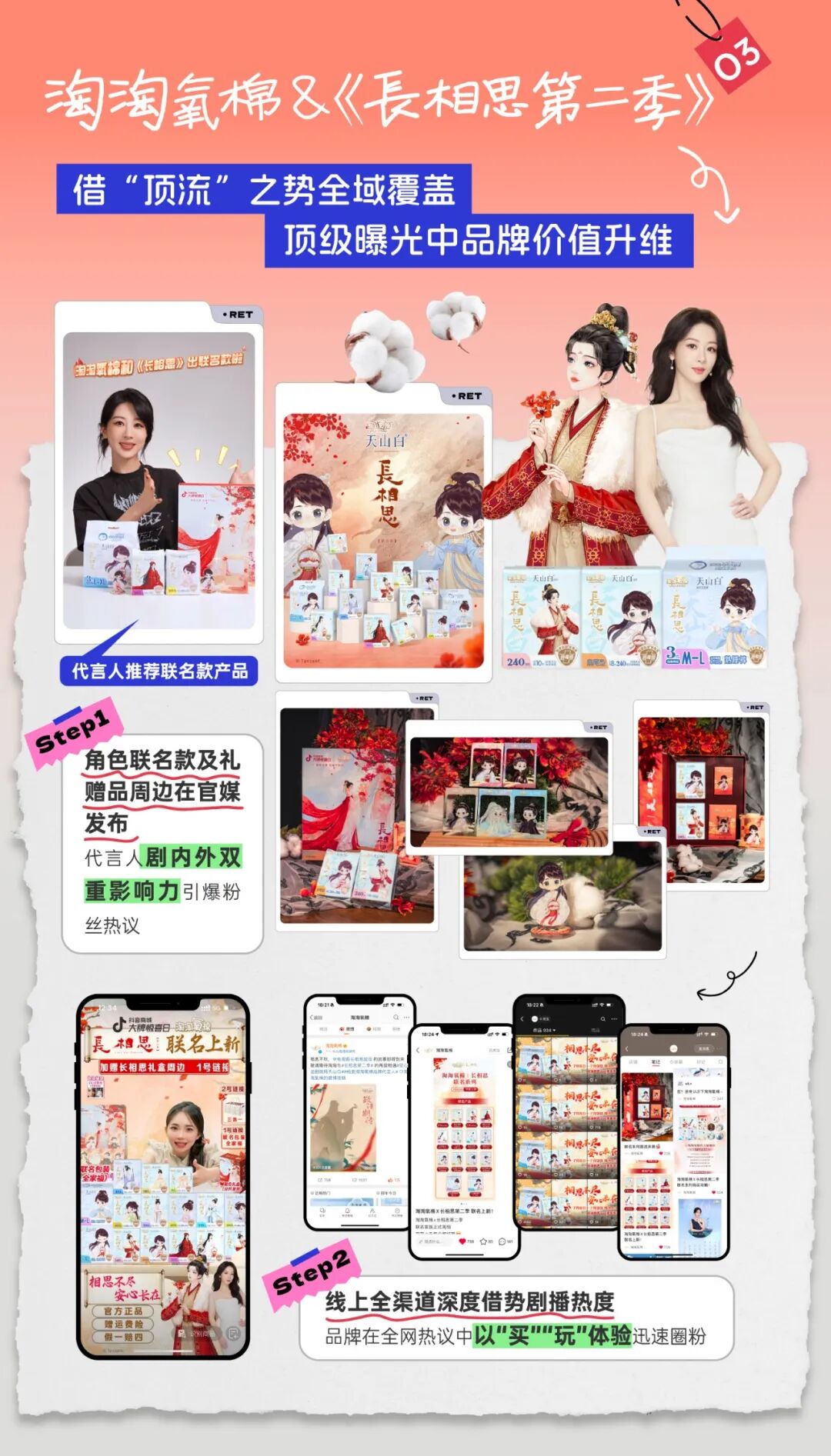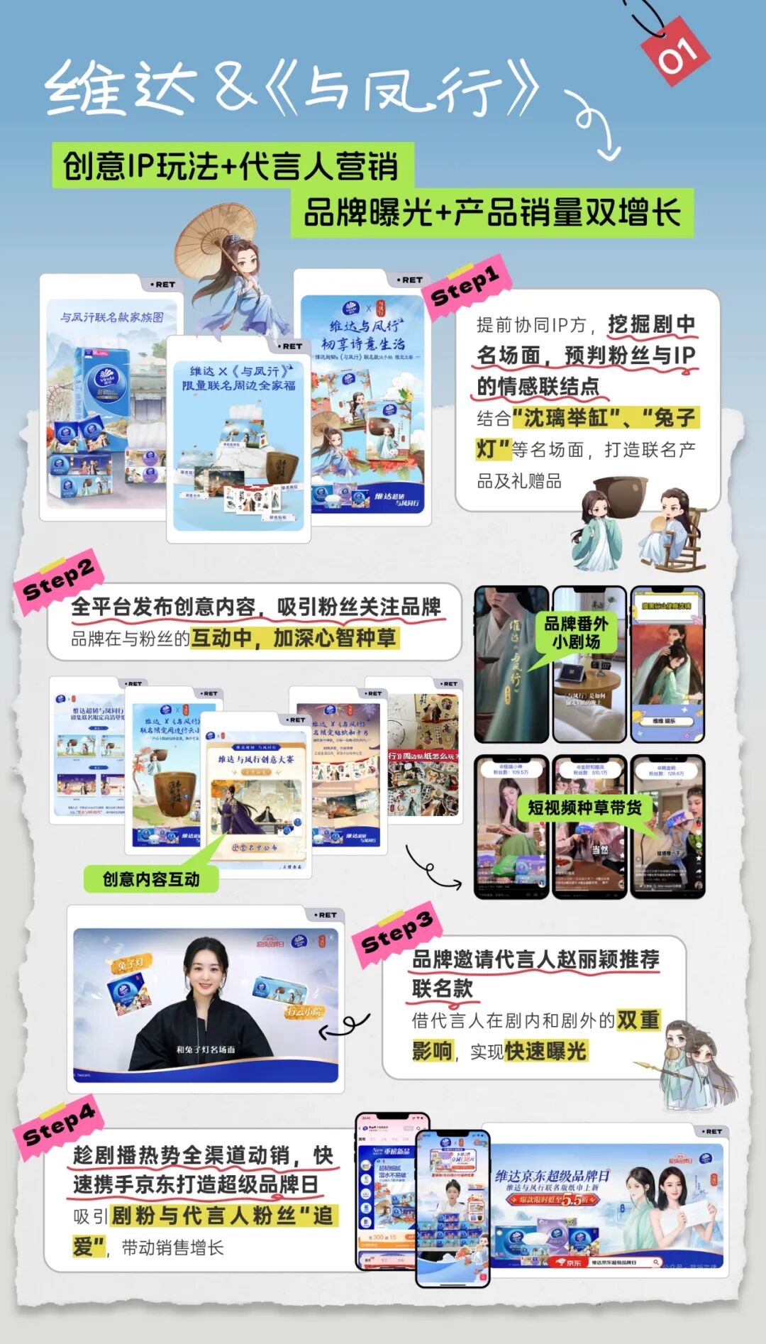 腾讯视频IP授权合作中,授权玩法越来越“亲民”。围绕“IP+”授权模式,品牌能够在剧播高热期以多场景联动,真实融入剧粉生活之中。一起话题互动,一场主题直播,一次线下主题展......品牌借剧播热势“全面出击”,快速吸引剧粉关注,在强化心智种草的同时,快速带动销量转化。3月,继官宣赵丽颖为品牌代言人后,纸品老牌劲旅维达迅速携手《与凤行》,借代言人主演的热度以及全渠道IP授权玩法,在剧播高热中实现品牌高曝光+联名款高销量的迅速转化,截止4月20日,仅仅开播三周,维达x《与凤行》联名产品全网销售额突破千万。