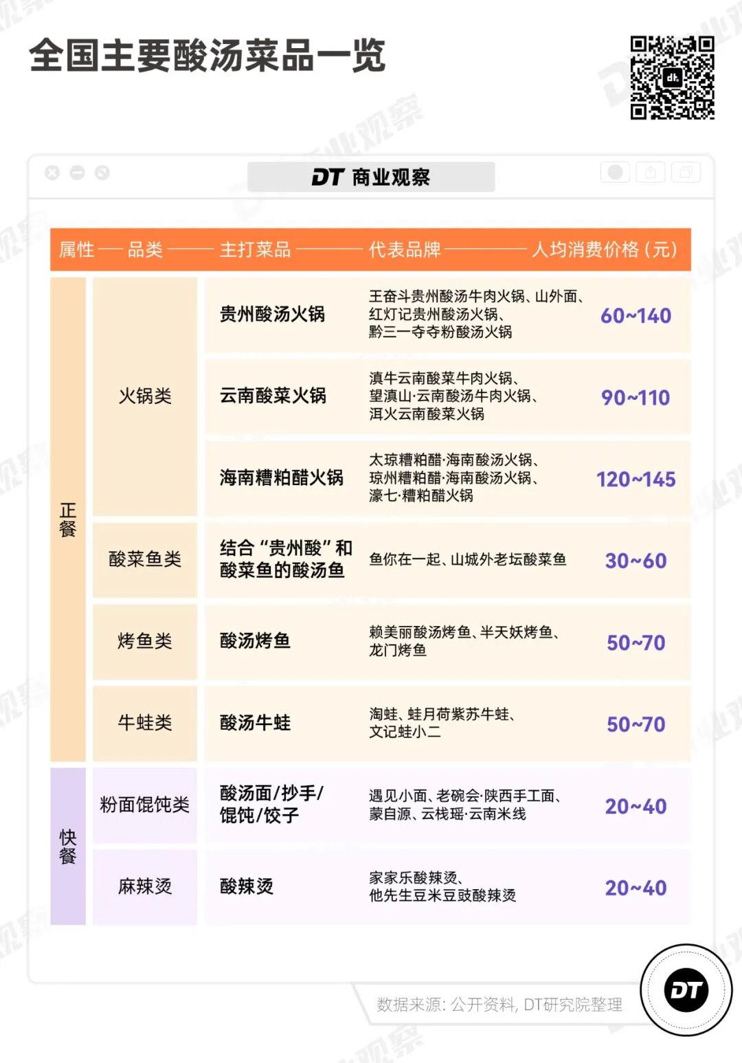 《DT商业观察》整理了市面上的酸汤菜品发现,很多本来就有汤底的菜品,都开始跟酸汤玩起了混搭,开发了不少新口味。
