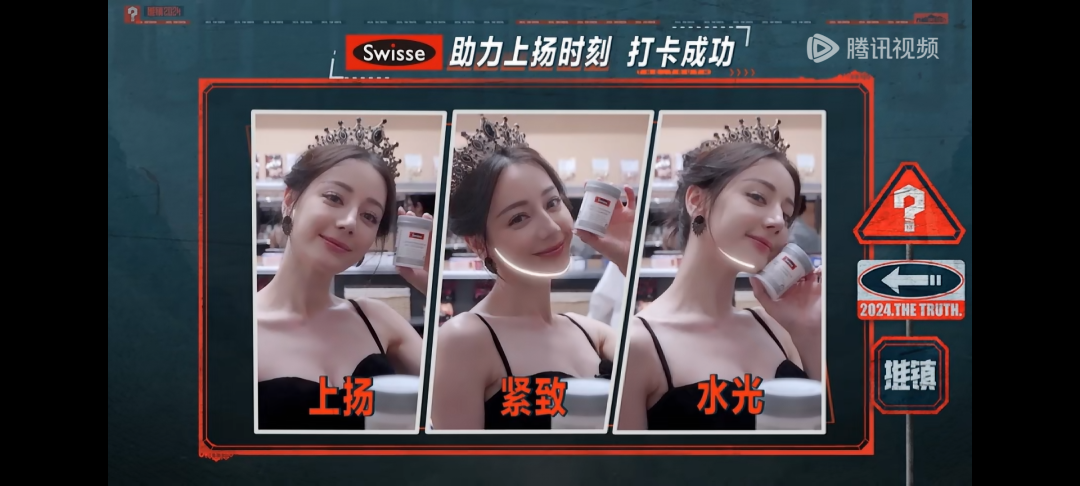 除了场景剧情向的线索深度植入,Swisse斯维诗还在《开始推理吧》中重点搭建了一个明星以及女嘉宾种草矩阵,高密度、高频次透过迪丽热巴和不同女嘉宾服用斯维诗超光瓶的场景,并联动她们用口播、功能演示等形式配合产品互动,形成极具冲击力的传播效果,二次强化认知。