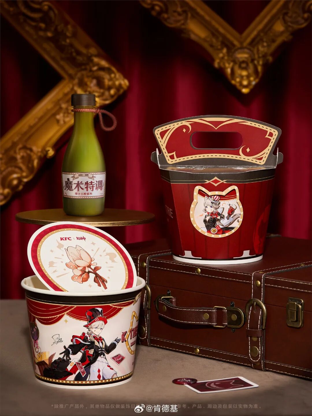 还有全新魔术舞台联动桶包装上线,购买「惊喜魔术桶」套餐的话就可以获得2枚珍藏徽章、一张纪念相卡和一款定制杯套以及游戏礼包。