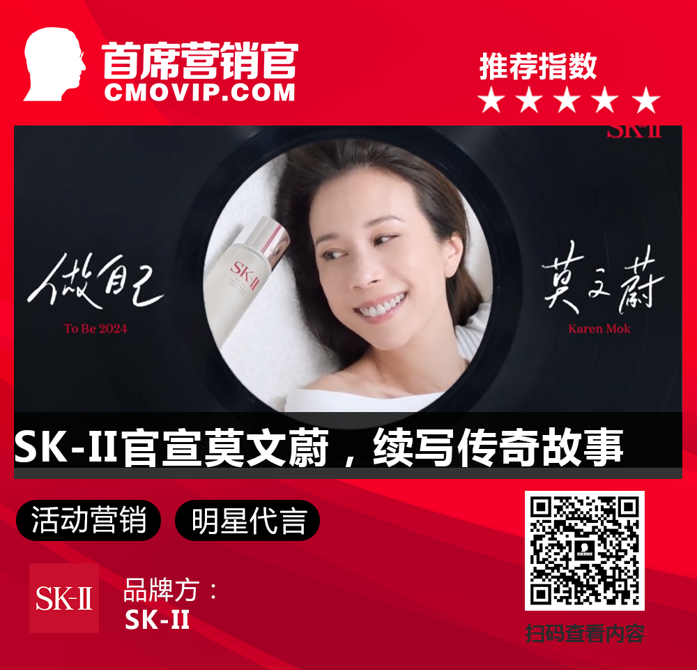 点评:莫文蔚的那份独立、自信、不断突破自我的个性与SK-II的品牌理念十分契合,并且用”真实“打动每一位消费者,引起强烈共鸣。