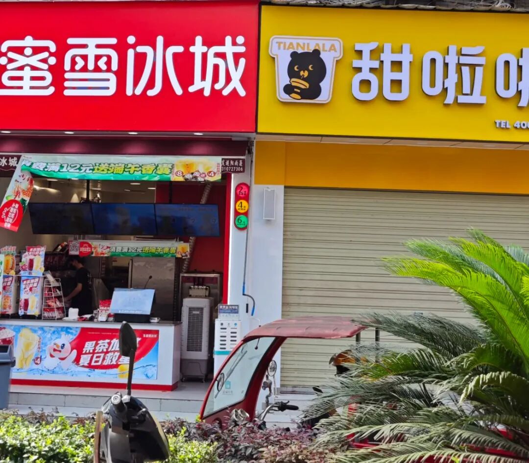 据统计,截至目前,甜啦啦门店在三线城市及以下的比重超过80.34%,而蜜雪冰城在这一市场的门店比例只有56.25%。