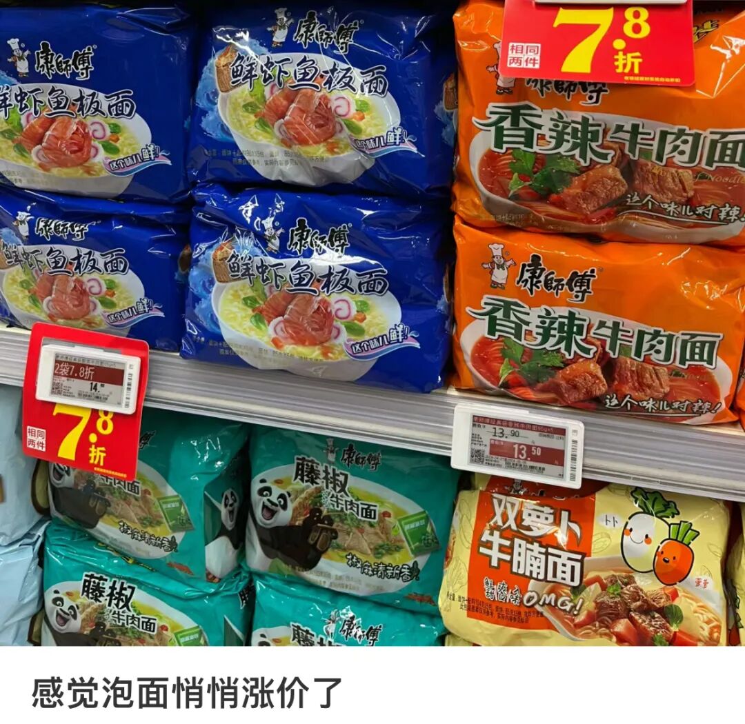 在上个月,康师傅老坛酸菜、红烧牛肉等经典款产品就已经开始上调零售价格。