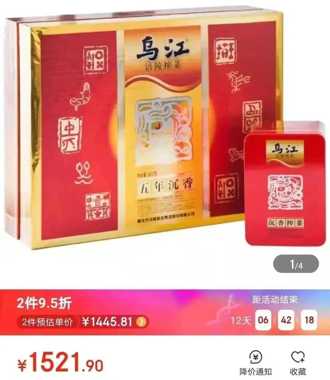 此前,涪陵榨菜还进军高端市场,推出净含量900克的五年沉香礼盒,号称全程纯手工制作,售价为1521元,比肩“飞天茅台”,摇身一变奢侈品。