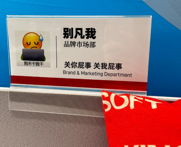 疯感十足的工牌,简直就是他们的“个性名片”,这张名片上不仅有疯感十足的口号和表情包,还有满满的个性和态度。这已经不是淡淡的疯感了,而是彻底发疯不装了。