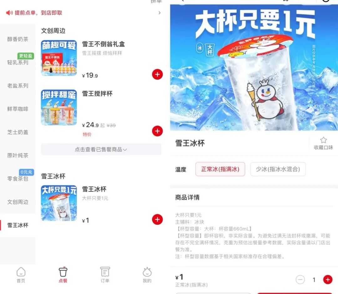 雪王的影响力加上令人感动的定价,冰杯一时间供不应求,不少门店出现了售罄,也成为了很多年轻人的“意难平”。