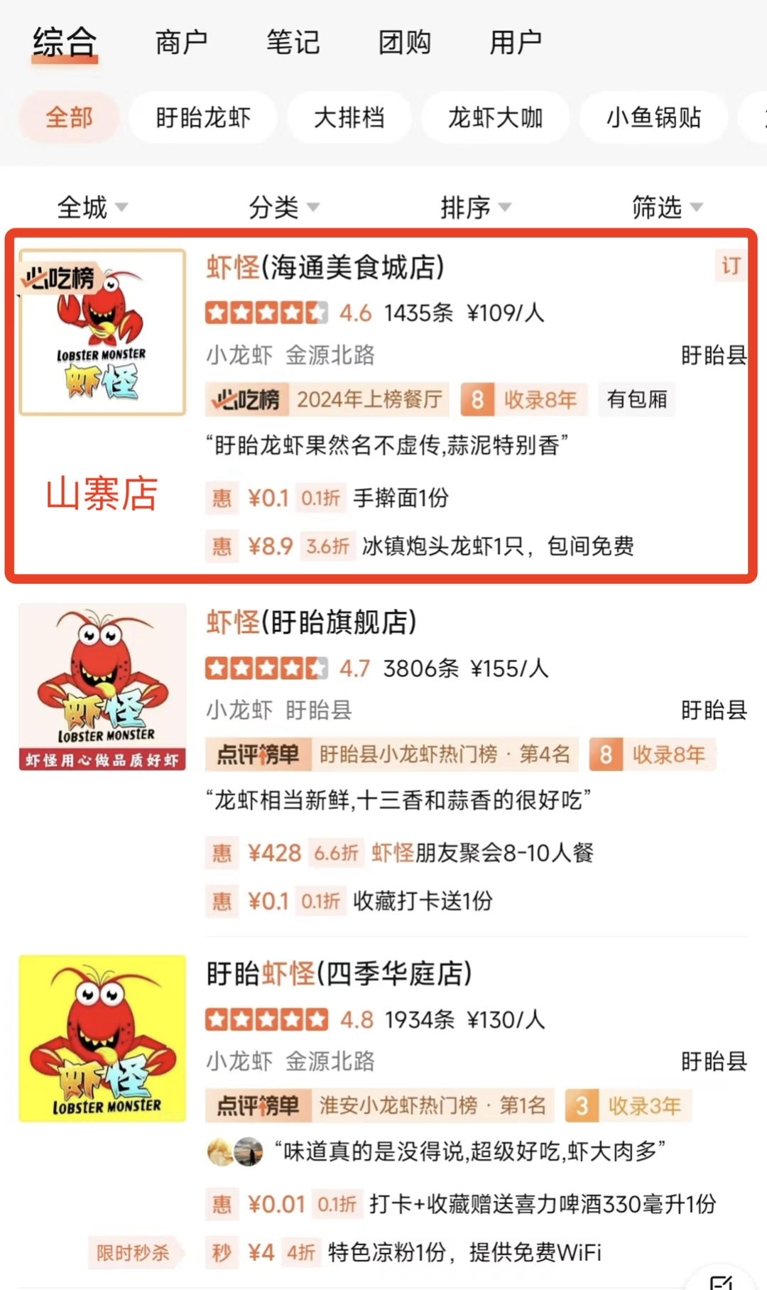 “后来我发现这是家山寨店。然后重新找到正版的小龙虾餐厅,虽然两家距离不远,但因为换店导致耽误错峰用餐时机,赶上用餐高峰,排队等了半个多小时。”小七表示,自己还专门向正版餐厅的老板询问了此事,“老板告诉我,这个(必吃榜)是平台根据每家的线上数据排出来的。他们家前段时间被恶意举报了。所以被退出来了。”