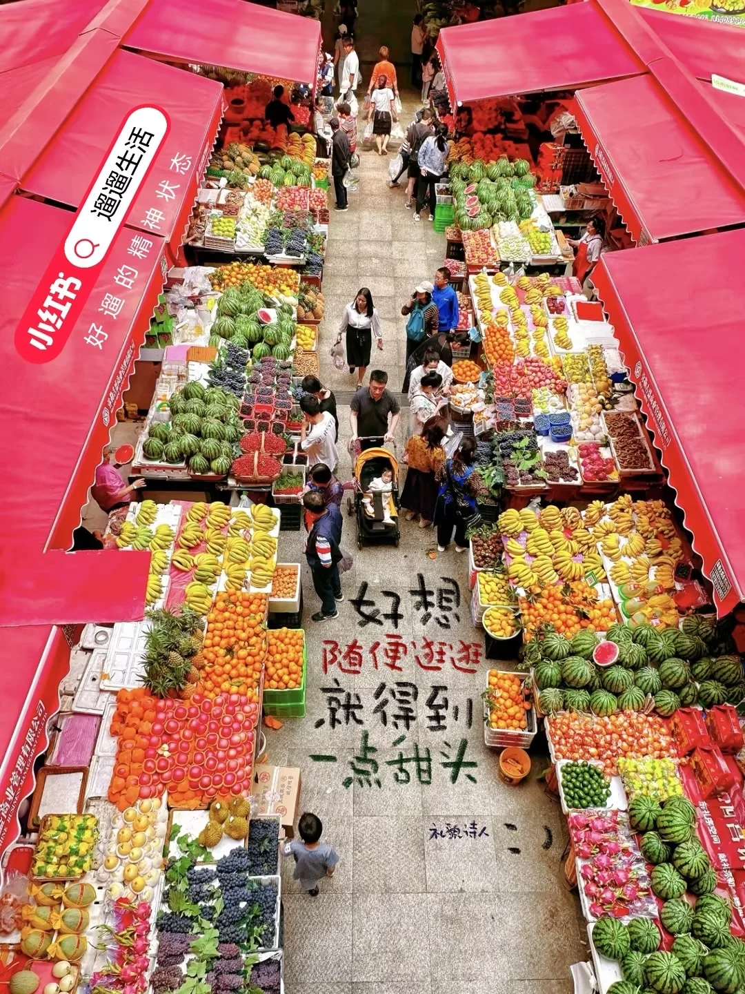 广州站主张打造「更适合年轻人体质的“精神快充”」,在广州知名街区地标东山口,打造出一座集美食、艺术、市集等多样生态于一体的线下限时快闪主题市集「遛之大集」。为了宣传这个活动,小红书还联合众多野生诗人一起写诗。