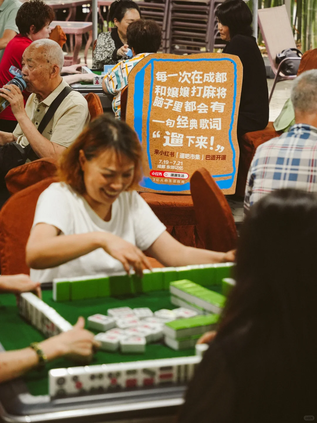 在成都,压马路,吃火锅,打麻将、喝茶,采耳,是成都人放松的好方式,在这些海报场景里,能看见成都人的松弛感,体现出小红书对成都地域特色的细腻洞察。
