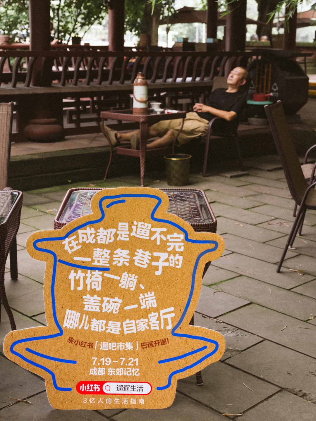 竹椅一躺、盖碗一端,