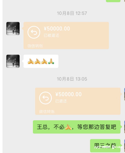10月25日,第二份声明称五万元转账记录断章取义,已报警。
