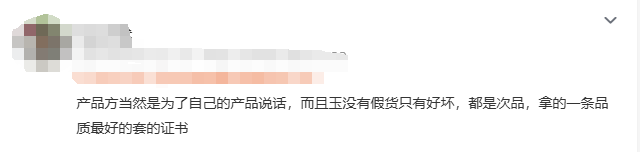 “信王派”则认为:“产品方当然是为了自己的产品说话,而且玉没有假货只有好坏,都是次品,拿的一条品质最好的套的证书。”“产品方否认自己商品是假货,就说这个有什么公信力,自己给自己作证。”