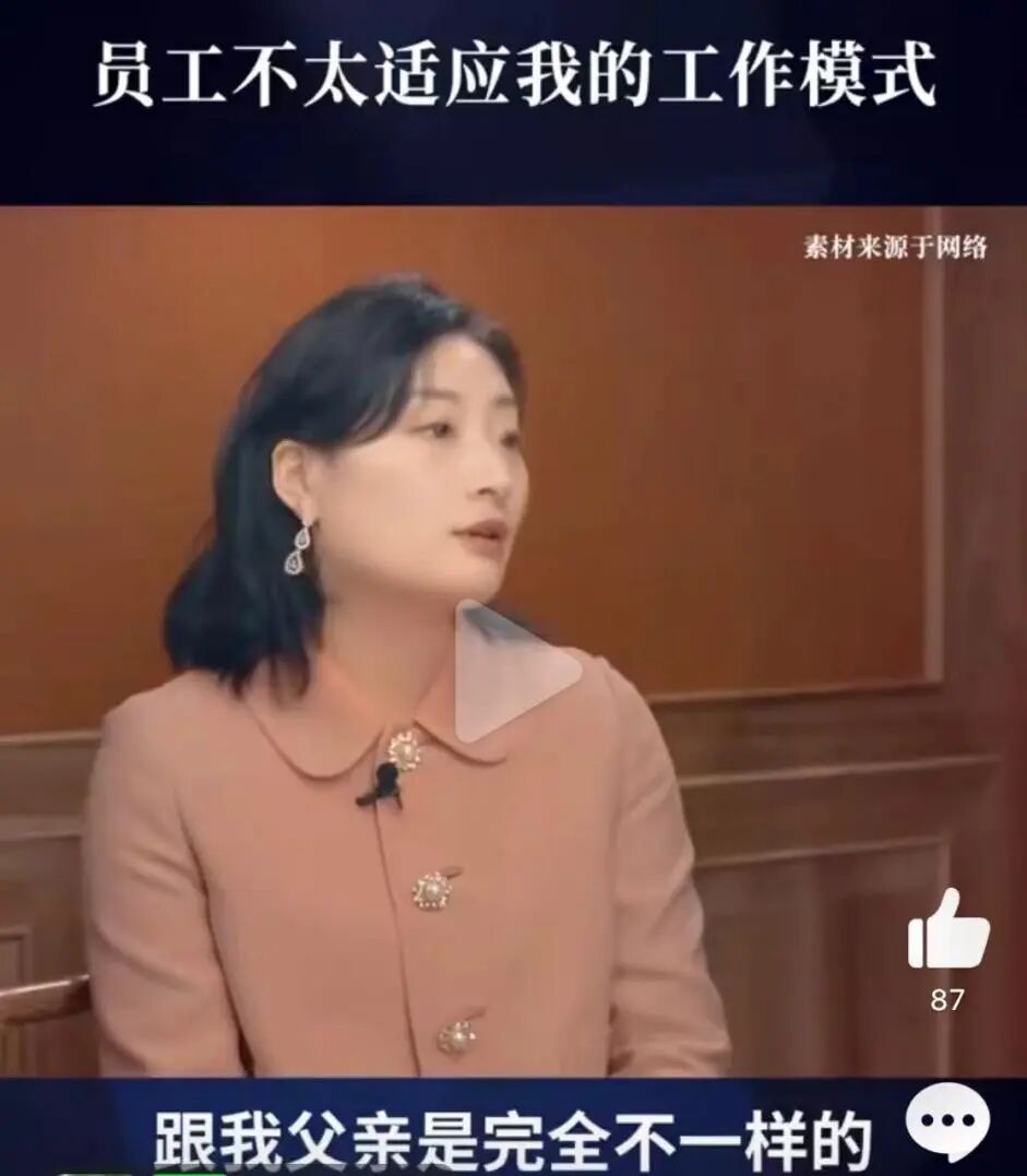 她说父亲会指导团队怎么做方案,团队更多做的是执行工作,但她希望团队自己去想方案。而且,她还是说了自己比较抠门,只愿意把钱花在刀刃上。