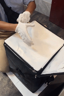好利来蛋糕配送服务堪称一绝,蓝帽子蓝衬衫的帅哥带着白手套单膝跪地为顾客“开箱”,仪式感拉满。