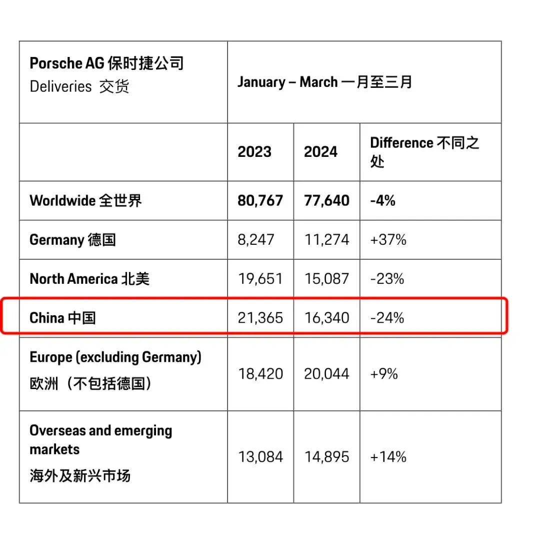 2023年,保时捷全球销量32万辆,同比增长3%,但中国区销量为7.92万辆,同比下跌15%,是保时捷全球范围内唯一下滑的单一市场。