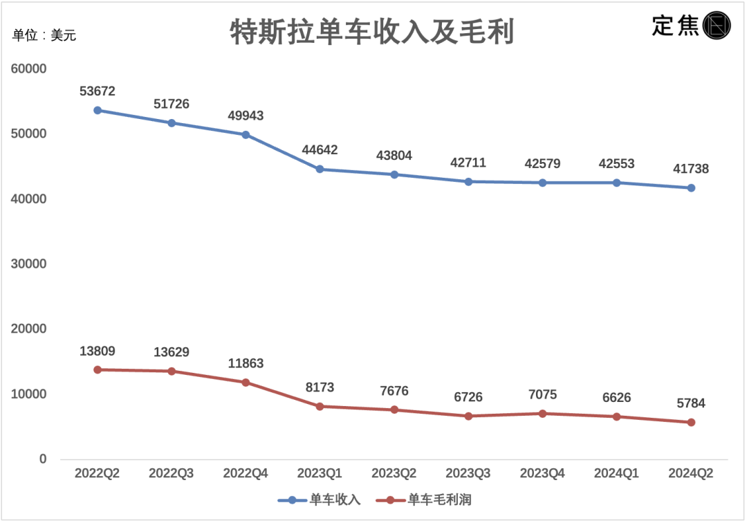 降价侵蚀利润。现在特斯拉的单车销售毛利润是5784美元,史上最低,而在两年前,这个数字是13809美元。