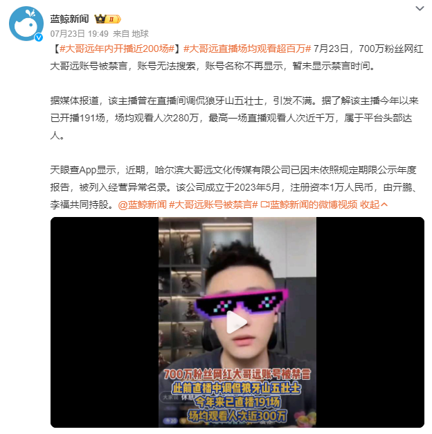 比“空空日记”行为更恶劣的,还有近日在直播过程中调侃“狼牙山五壮士”的700万粉丝网红“大哥远”(已被封号)。