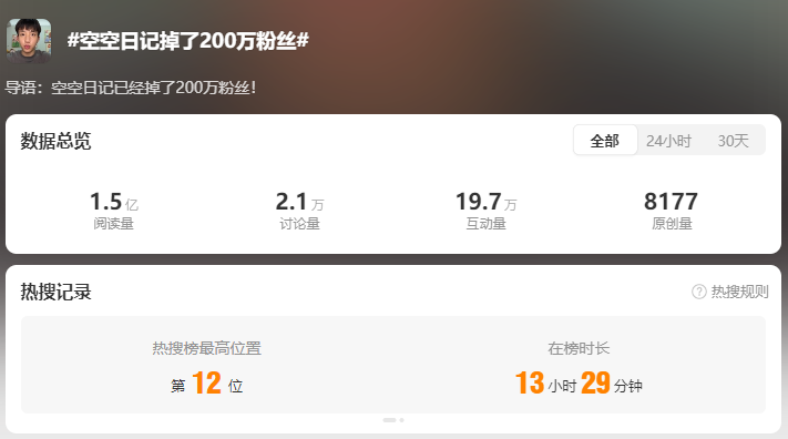 别人出圈是蹭蹭涨粉,“空空日记”则是框框掉粉。