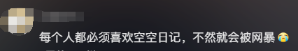 很多网友都在其评论区留言揶揄,“每个人都必须喜欢‘空空日记’,不然就会被网暴”。