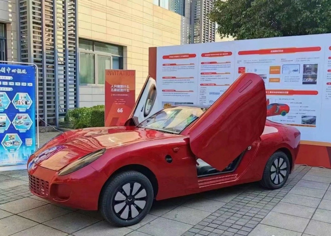 据博主介绍,这款小跑车是根据“人民的需求”而生产的,其外观设计与保时捷相似,并且采用了经典的剪刀门设计。