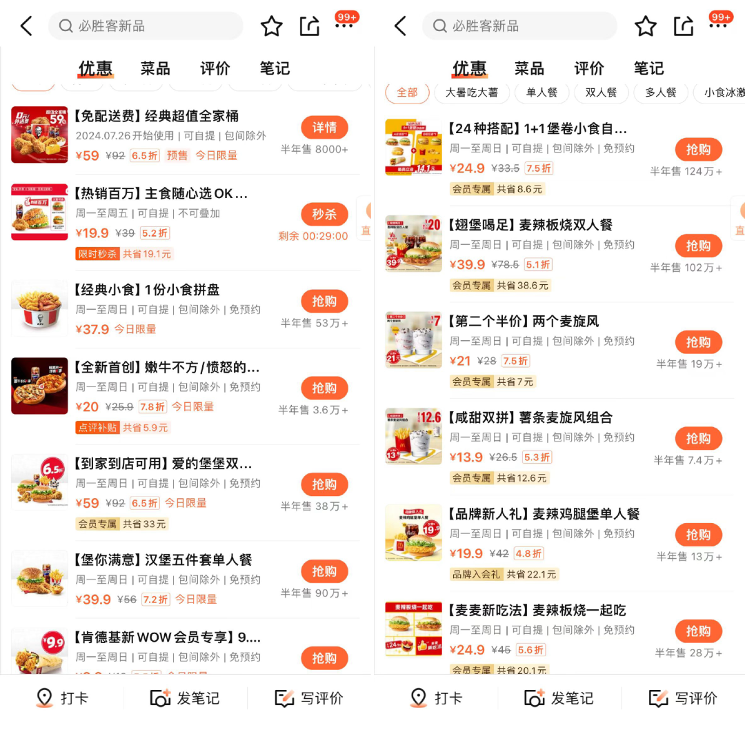 不光是汉堡,在团购平台上,麦肯两家有40多个团购套餐,从早餐到午餐,再到夜宵,无所不包。从消费者的“体感”来讲,这价格战已经全面打响,旷日持久。