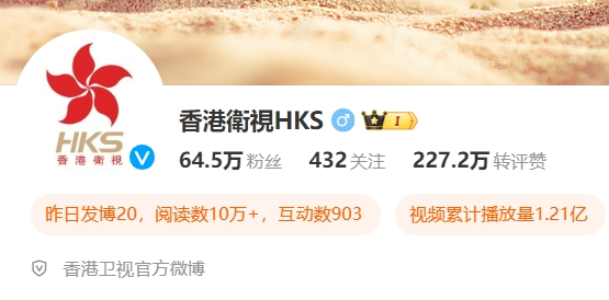 电商天下查阅发现,香港卫视HKS微博账号认证为“香港卫视官方微博”,粉丝量64.5万。因此,虽然其他主流媒体并未跟进,但香港卫视官方微博的报道或具备一定的真实性。