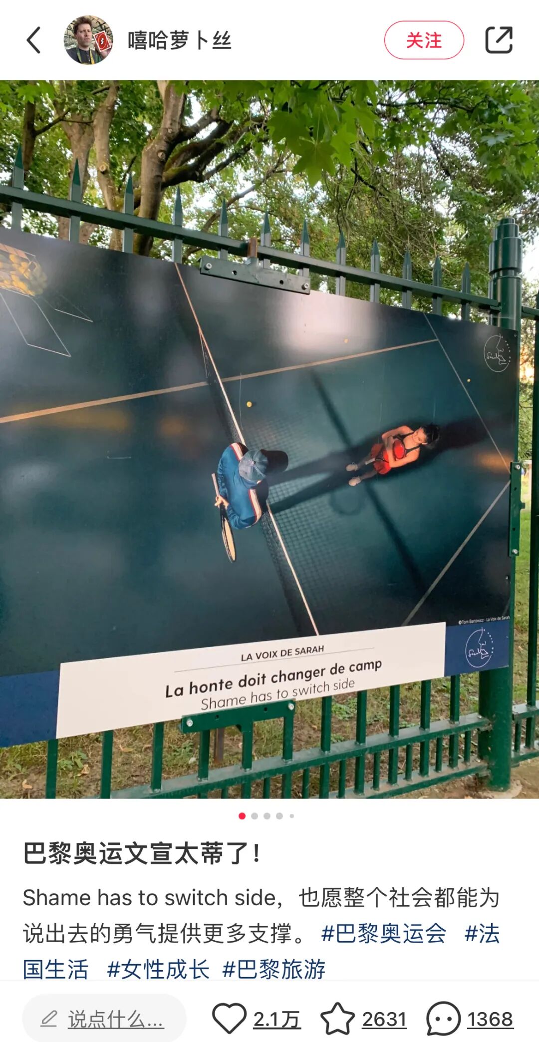 巴黎奥运会终于开幕,没想到场外的一组反性暴力文案火了。