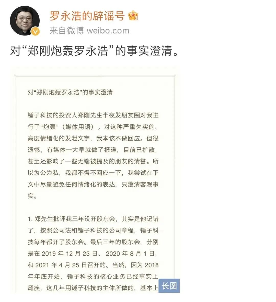 为此,2023年1月7日凌晨,郑刚在朋友圈发文声讨罗永浩,称其有三个方面不地道: