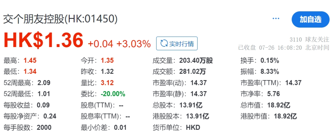 数据表明,该公司股价在消息传出后迅速攀升,截至7月26日上午11点,涨幅已达3.03%,市场表现相当出色。到7月26日下午收盘,交个朋友的成交额更是高达281.02万。