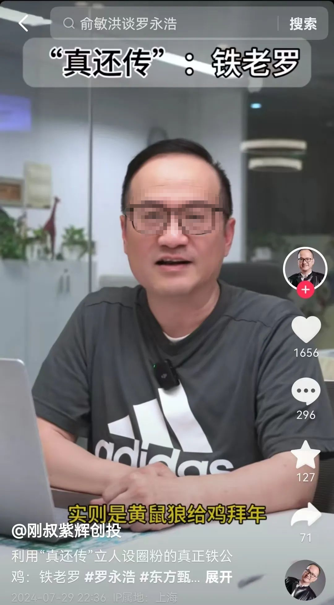 然而,这次罗永浩却遭到了反噬,针对罗永浩对于董宇辉和俞敏洪的点评,锤子科技(罗永浩为该公司董事长)投资人紫辉创投的郑刚发布视频开怼罗永浩称,黄鼠狼给鸡拜年,没安好心,并重锤了其“真还传”人设。