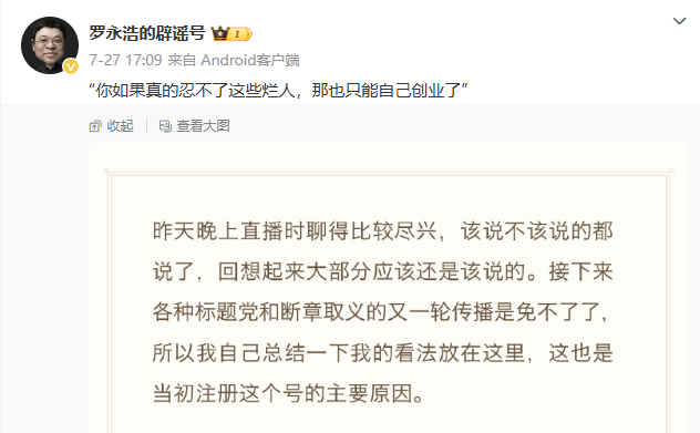 新东方一有风吹草动,罗永浩都会闻风而动。