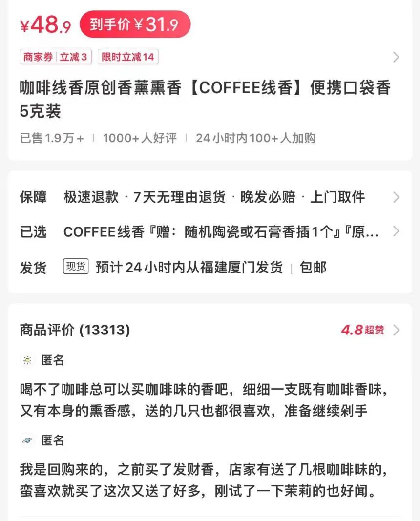 而在小红书上搜索线香后,会发现咖啡味、茶香味等新奇类产品,以及看上去更像是香水才会用到的玫瑰、洋甘菊味等“网红味”产品,由于这类产品售价大多亲民,所以销量还不低。