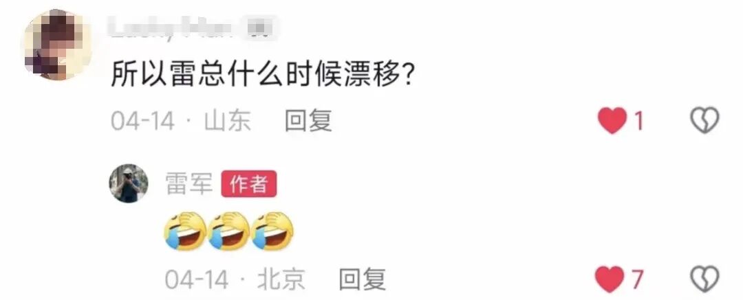 比如,在今年4月,有人问雷总什么时候玩漂移?
