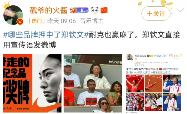 不可否认,对于事后响应郑钦文的品牌来说,短线短平快的站台或者打广告,也能让品牌收割一次流量,让消费者买单。