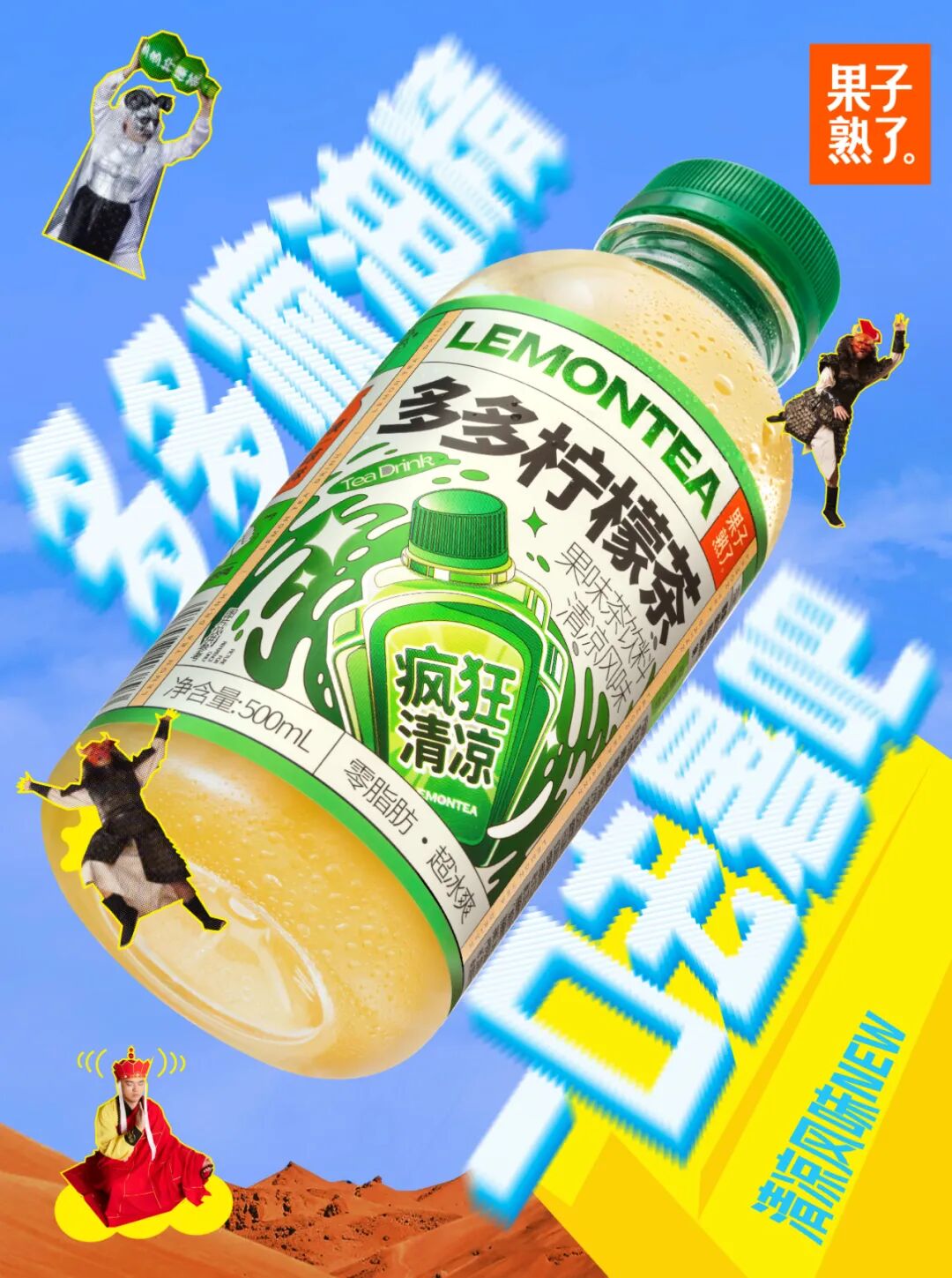 其次,多多柠檬茶为新口味推出的TVC、KV等结合了经典的西游记元素,不仅增加了产品的趣味性,也再次证明,经典IP的无限可能依然值得新品牌反复挖掘和创新。