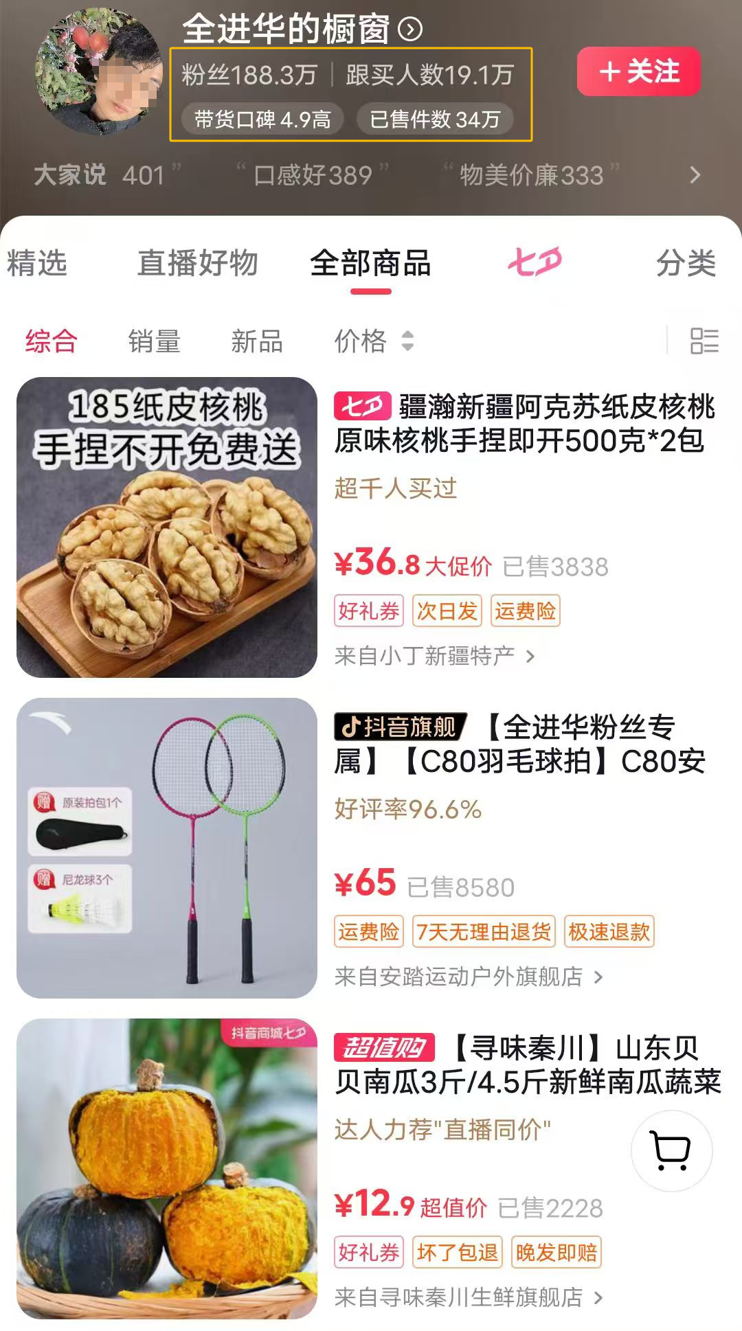 图源:全进华抖音橱窗截图
