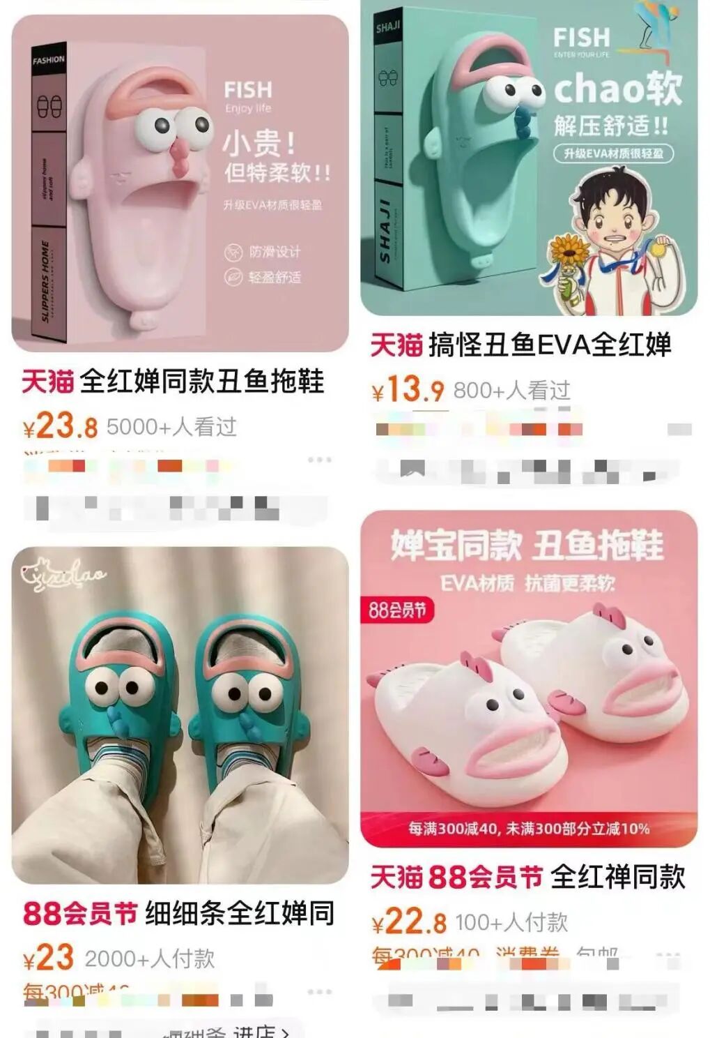 在某宝平台搜索丑鱼拖鞋,可以看到无数商家都在这双拖鞋前面打上了全红婵的名字,看来商家们已经掌握了财富密码。