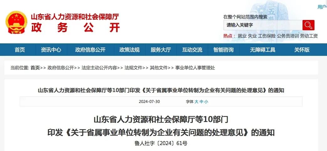 最近,作为我国北方第一经济强省山东省,其人社厅等10个部门发布通知,称正式启动省属事业单位转制为企业的全面改革。