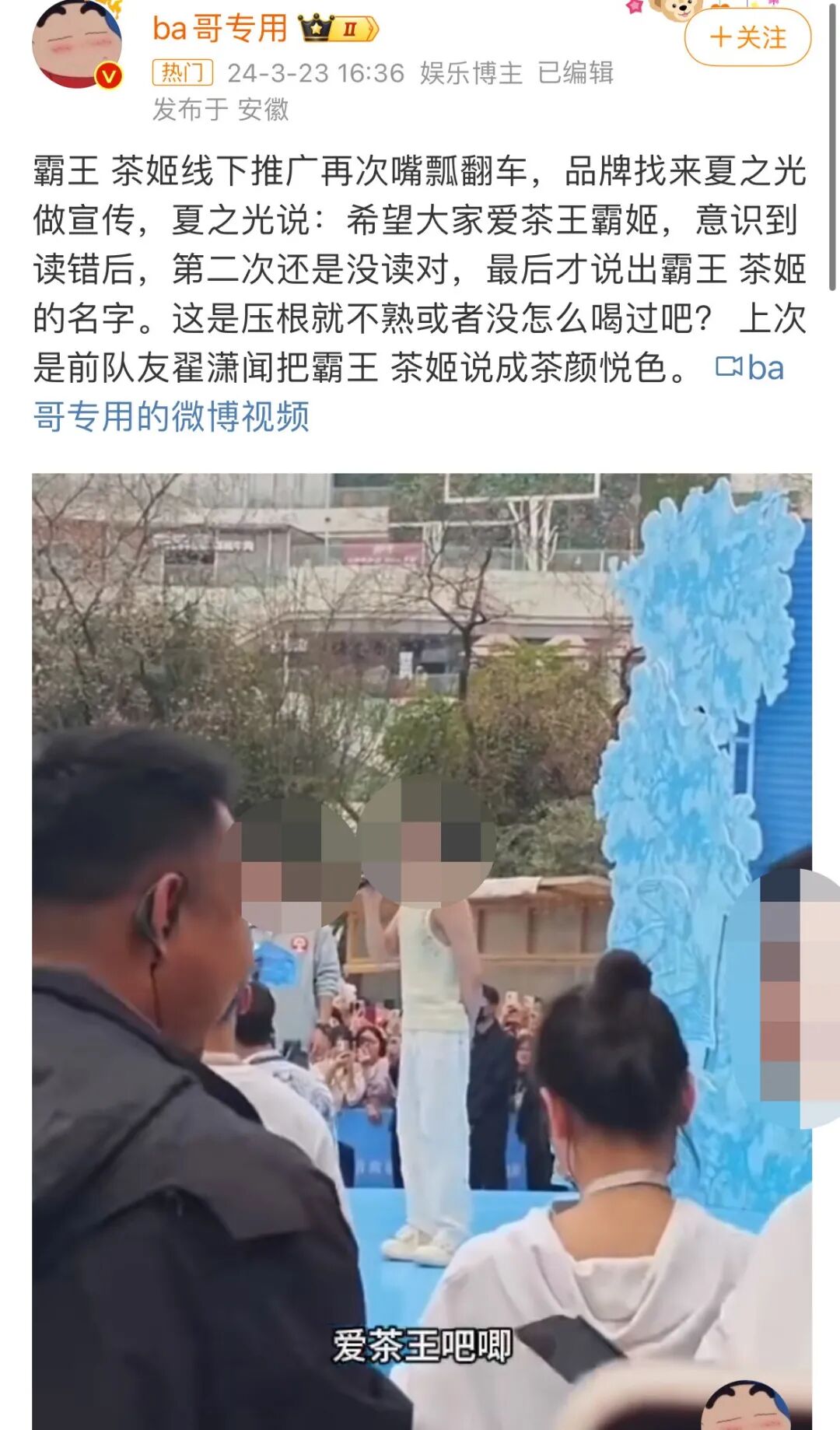 由此不免让人联想到此前被频繁念错名字的“霸王茶姬”,从“茶颜悦色”到“茶王吧唧”,拿钱办事的代言人就是记不住霸王茶姬的名字,让人啼笑皆非。