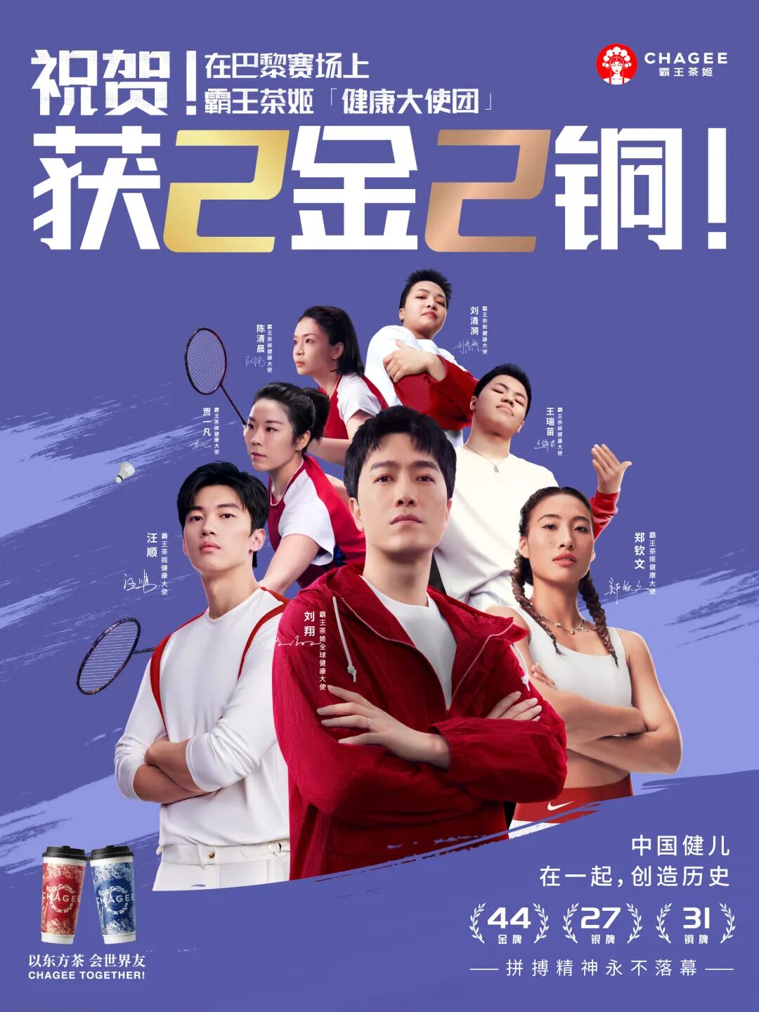 甚至,再看霸王茶姬7月份官宣的“健康大使团”,除了已退役的刘翔和未参加巴黎奥运会的霹雳舞舞者王瑞苗,其他出征奥运会的运动员都从巴黎带回了奖牌。