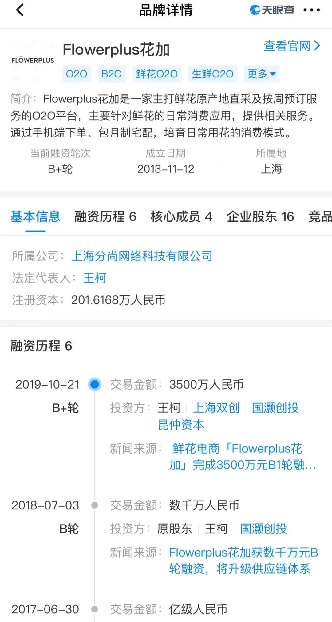 创立之初,花加就获得了合计1000多万元的Pre-A轮融资,此后累计完成6轮融资,总金额超2亿元。真格基金、昆仲资本、光合资本、远镜中国、联创等均参与了投资。